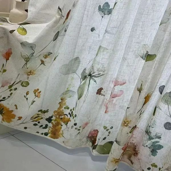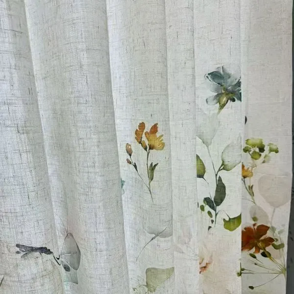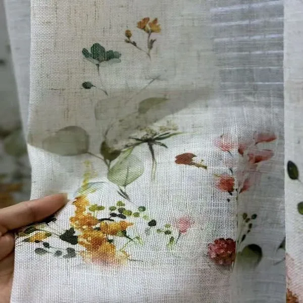 Keqiao wholesale botanical print linen sheer curtains: Easy-to-clean nature-inspired window screens for urban lofts, living room & bedroom. Elegant, ideal for bulk orders.