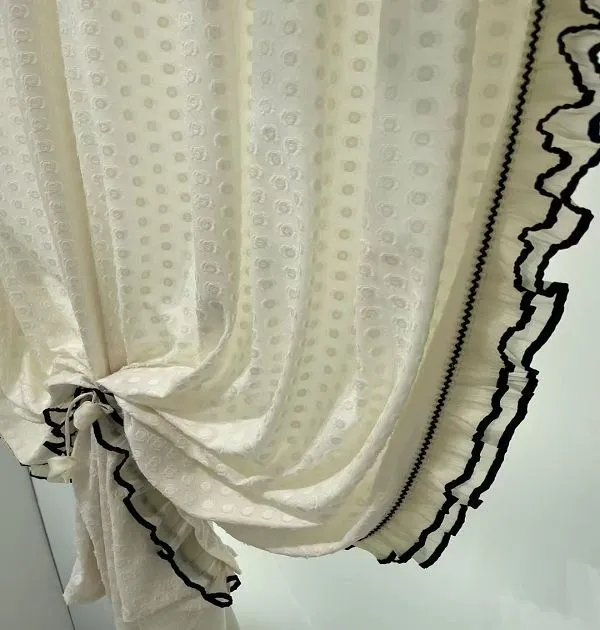 Wholesale window screens French Vintage Jacquard Sheer Curtain with Black Ruffled Edge and Tieback for Bedroom & Living Room