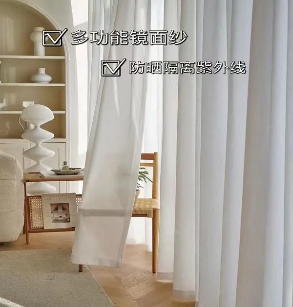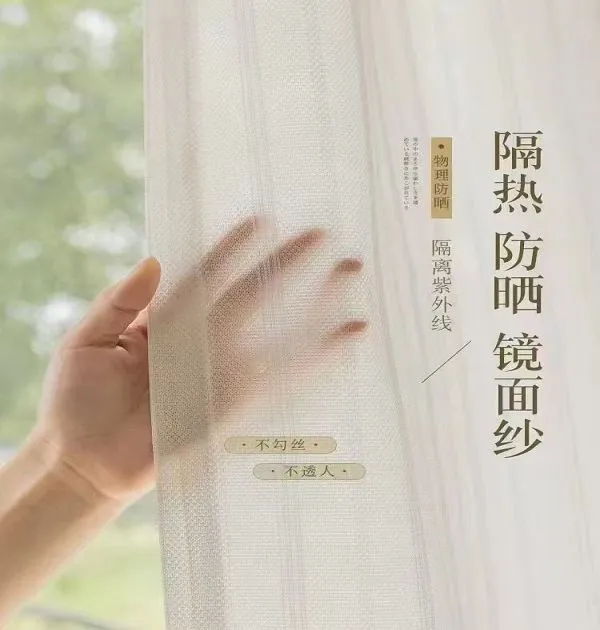 Wholesale heat insulation UV blocking mirror sheer curtains: Sun protection window screen fabric. Durable, energy-saving, ideal for bulk commercial/residential orders.