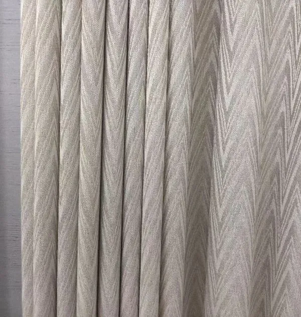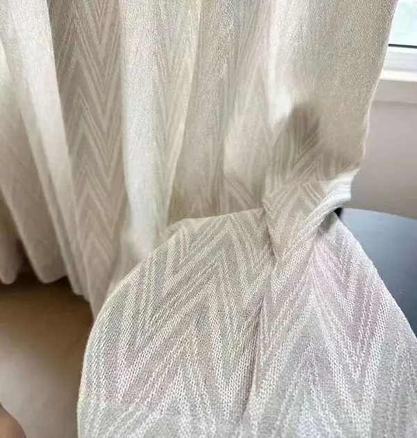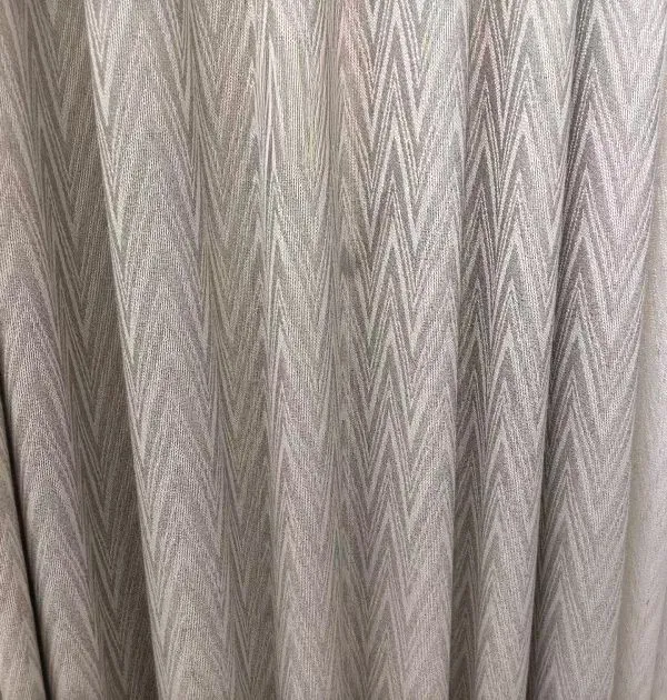 This modern sheer curtain features a chic chevron pattern and is made with a 40% linen blend. In a neutral gray tone, it combines texture and style, perfect for bedrooms and living rooms. It filters light beautifully, adding a sophisticated touch to your space while maintaining a breathable, natural feel. Ideal for those who love contemporary or rustic-inspired home decor.