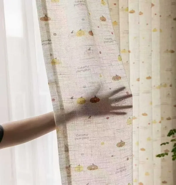 Wholesale pumpkin-print linen sheer curtain – whimsical voile for farmhouse autumn home decor. Light-filtering, charming, and durable, adding seasonal warmth to living rooms, bedrooms, or sunrooms.Wholesale pumpkin-print linen sheer curtain features whimsical voile fabric, designed for farmhouse and autumn home decor. The playful pumpkin patterns infuse spaces with seasonal charm, while the linen blend ensures breathability and soft texture. Sheer material gently filters light, creating a warm, cozy ambiance ideal for autumn gatherings. Lightweight yet durable, it complements farmhouse interiors seamlessly – a stylish, seasonally relevant choice for wholesale window screen suppliers catering to seasonal home decor demand.