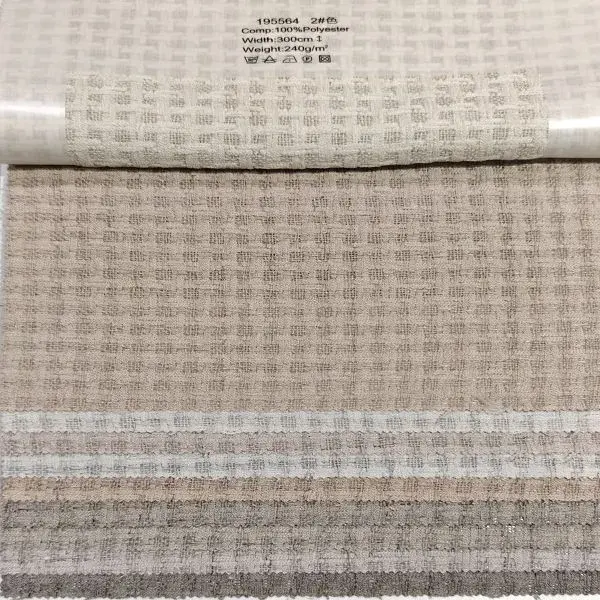Wholesale window screens Textured Weave Grid Sheer Curtain Fabric – Neutral Tones Sophistication Collection