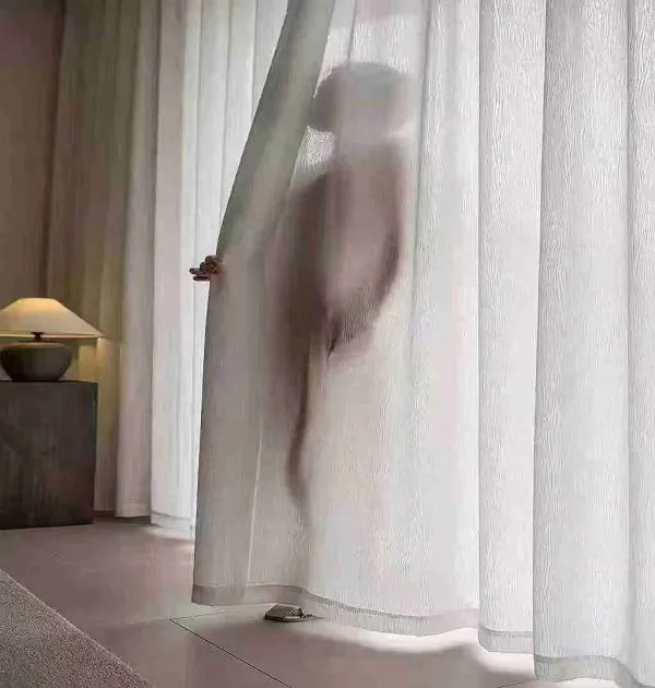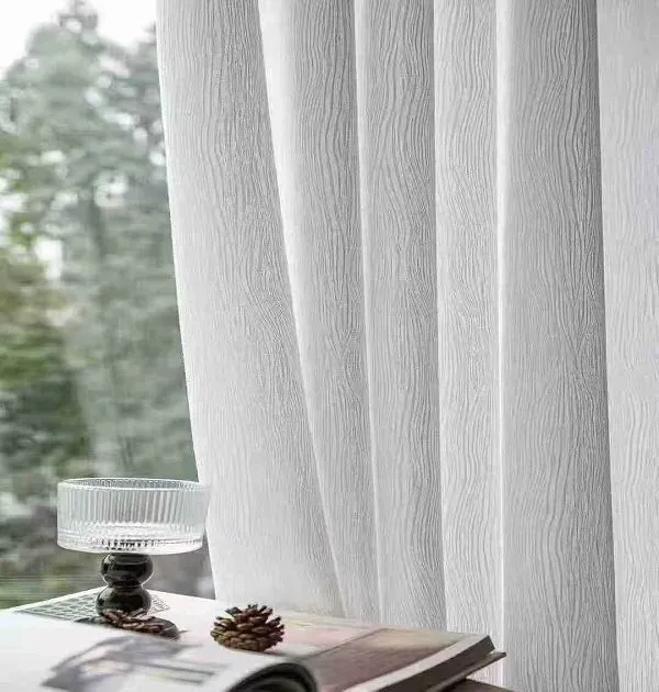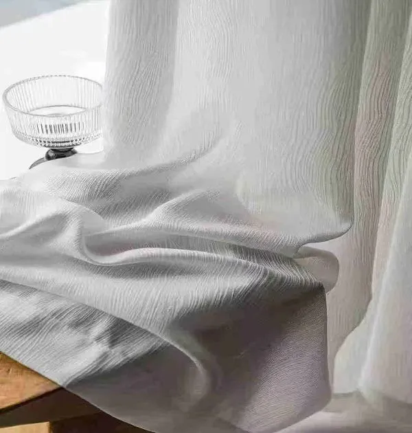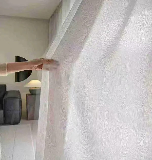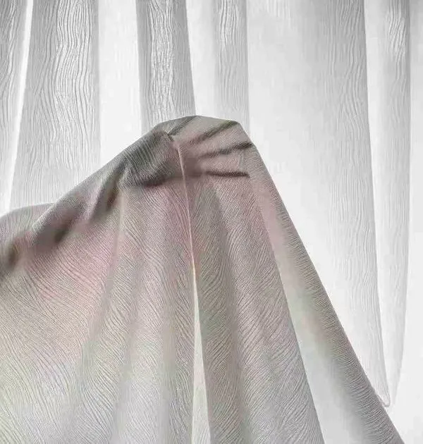 Wholesale minimalist textured white sheer curtains – light-filtering voile fabric for modern living rooms/bedrooms. Soft, durable, and ideal for global bulk orders from 柯桥 (China’s fabric hub).