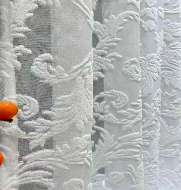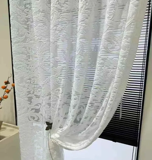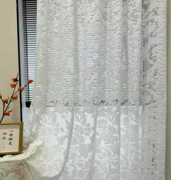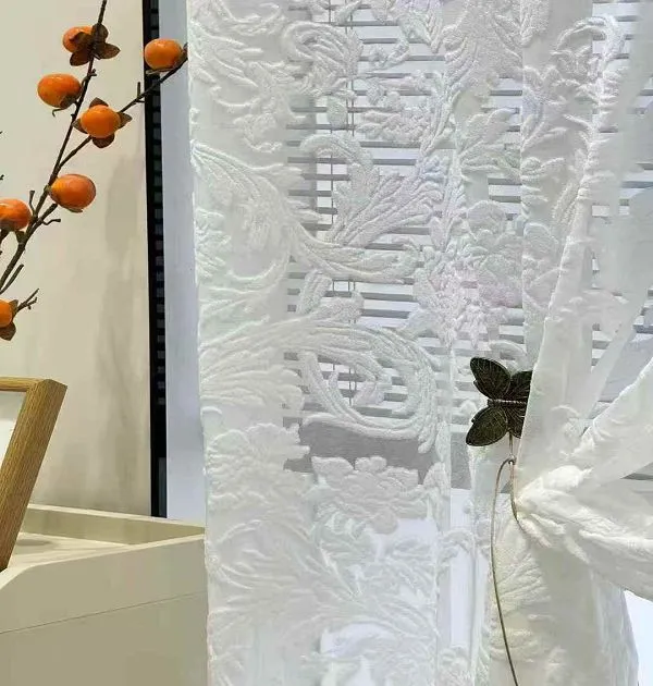 Wholesale vintage floral embossed sheer curtains: Elegant ornamental window screens for classic interiors. Premium voile, durable, ideal for bulk decor orders.