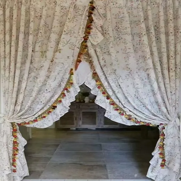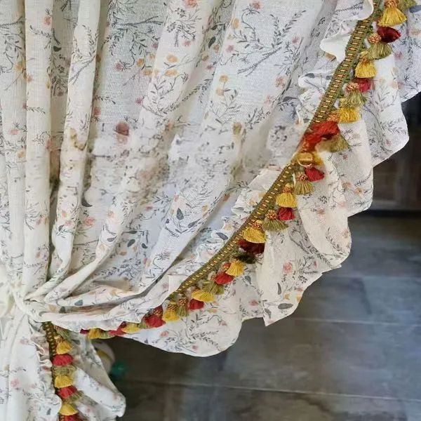 Keqiao wholesale vintage floral ruffled sheer curtains: Wrinkle-free romantic window screens for bed-and-breakfasts, living room & bedroom. Shabby chic, ideal for bulk orders.