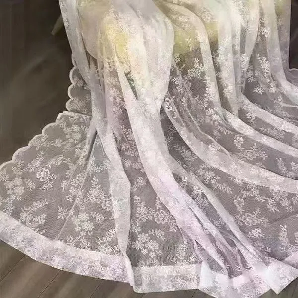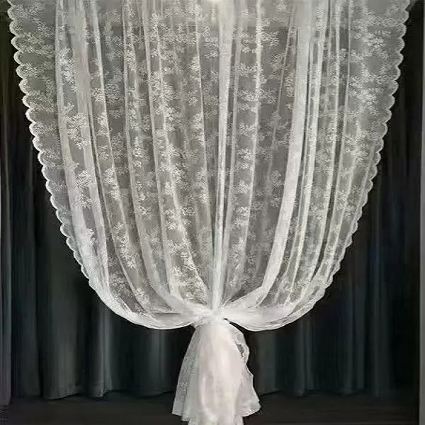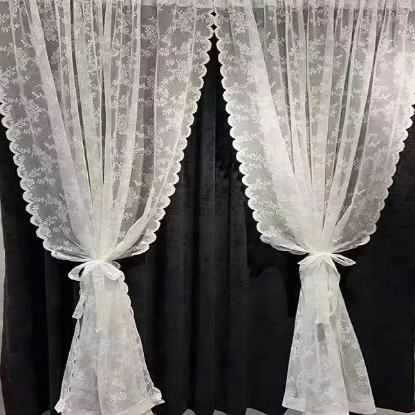 Keqiao wholesale white floral lace sheer curtains: Washable scalloped edge window screens for boutique serviced apartments, living room & bedroom. Vintage, durable, ideal for bulk orders.