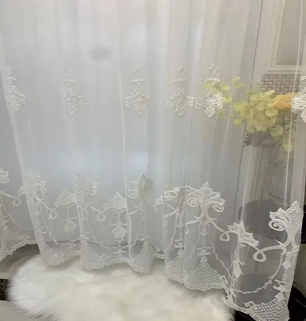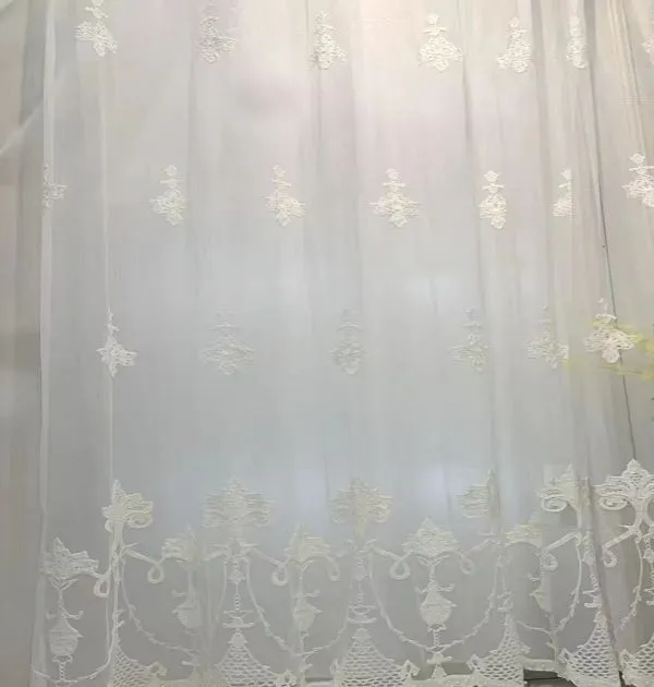 Keqiao wholesale white ornate embroidered sheer curtains: Vintage elegant window screens for living room & bedroom. Textured, durable, ideal for bulk orders.