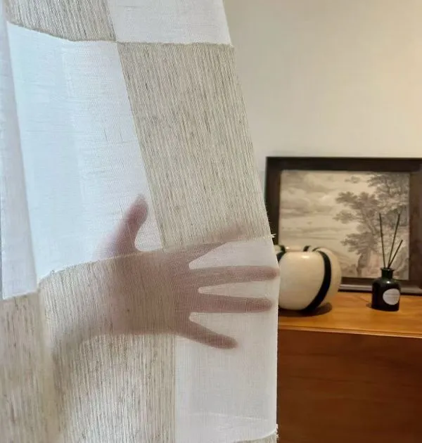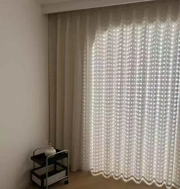 Оптовые продажи бежевых текстурированных прозрачных штор в клетку – современные минималистичные оконные экраны для современного домашнего декора