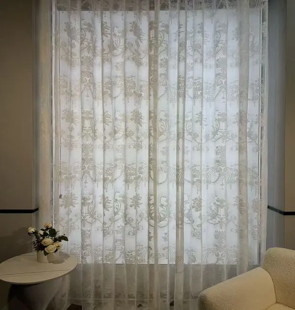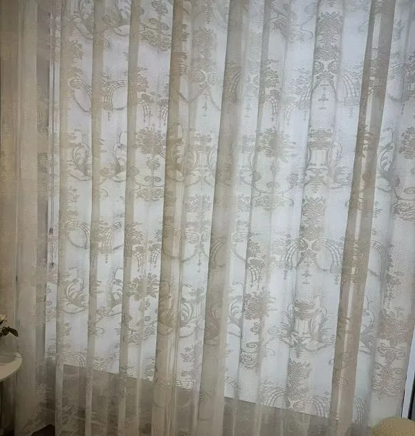 Оптовая продажа бежевых винтажных цветочных кружевных штор: Светофильтрующие оконные экраны для классического домашнего декора. Элегантные, прочные, идеально подходят для оптовых заказов классического декора.