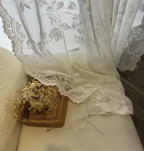 Оптовые прозрачные занавески с белым цветочным кружевом: светофильтры с волнистым краем для винтажного домашнего декора. Романтичные, элегантные, идеально подходят для оптовых заказов винтажного декора.