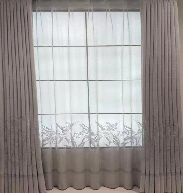 Keqiao, Shaoxing, China Gray double-layer sheers (600g/350g) with bird embroidery – chic light control.